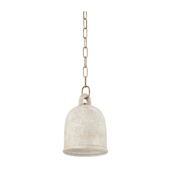 Relic is the epitome of earthy sophistication. The White Ceramic bell-shaped pendant is highly textured, creating a modern form with a rustic feel. The shade fills with a warm light and the curved handle at the top is both functional and beautiful. Gorgeous styled alone or in multiples. Part of our Lauren Liess collection.
