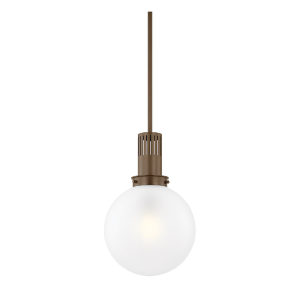 Tobias is a recognizable basic with a cool, modern feel. The oversized glass globe has been internally etched to add texture, but the real star of this pendant is the industrial-style chimney. Perforated with elongated slats, it sets the tone with either a Patina Brass or Bronze finish. This modernized retro staple comes in two sizes to suit your spatial needs. *Fixture may only be installed as shown in picture.