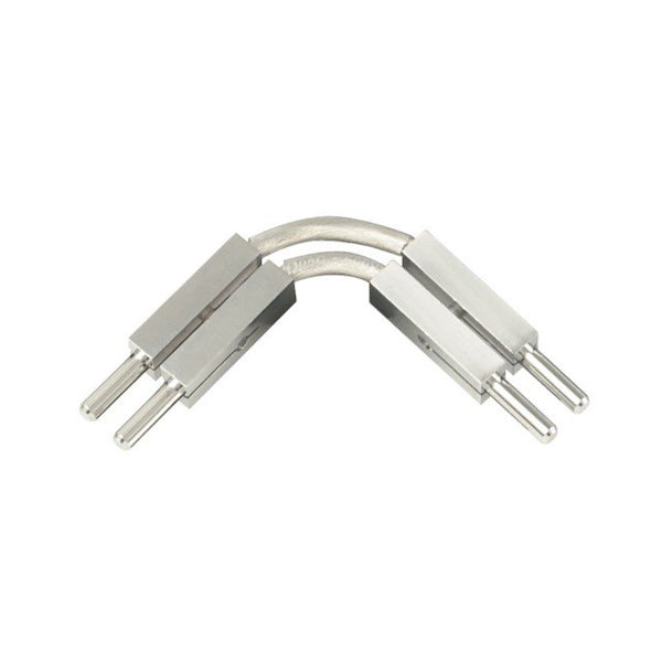 These conductive connectors join sections of rail together end to end at desired vertical angle.