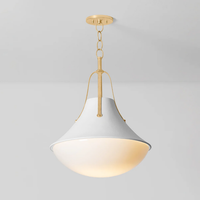 Inspired by Parisian antiques, the transitional design of Coventry is elevated by its decorative details. The soft curves in the silhouette and domed opal glossy glass shade are inviting and easy to apply to multiple spaces. Coupled with the White Plaster finish of the shade, the timeless Vintage Gold Leaf metalwork feels fresh and contemporary. *Fixture may only be installed as shown in picture.