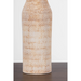Inspired by the decorative tiles and rugs found in Moroccan markets, the Medina table lamp features a ceramic base covered with an intricate, weave-like pattern. A white linen drum shade complements the base with its neutral color, grained texture, and oversized silhouette. When illuminated, light reflects off the Aged Brass hardware at the neck, adding a subtle glimmer to the design.