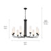 The Truby 9 light chandelier illuminates through aerodynamic-inspired arms made of Satin Etched Cased Opal Glass.