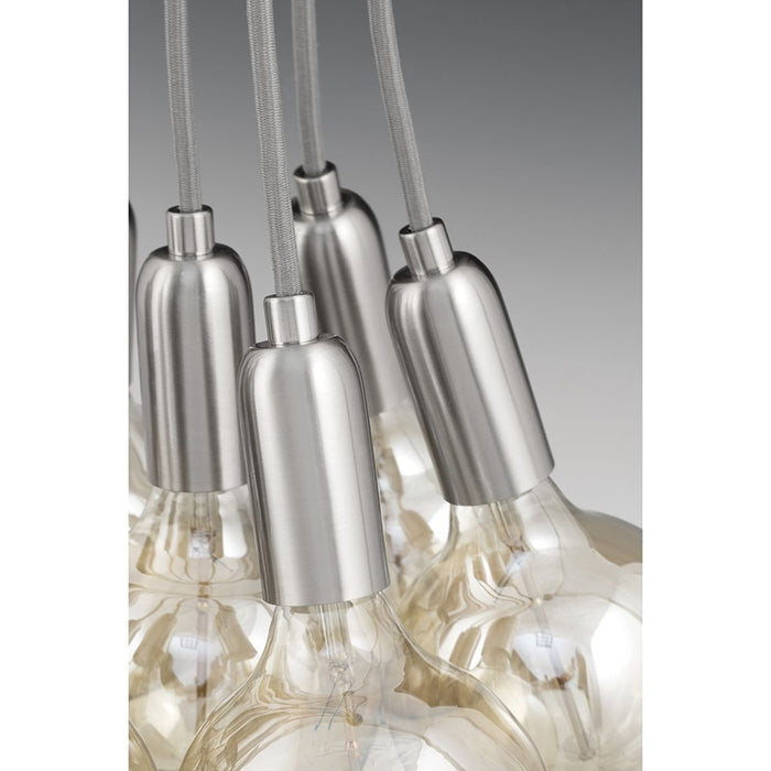Cirro displays casual elegance that is found in simplicity of form. Nine individual lights suspended from a single point provide the perfect platform for nostalgic oversize globe or vintage light bulbs. The design is a versatile option to provide a dramatic statement to a variety of interior styles ranging from Modern to Casual.