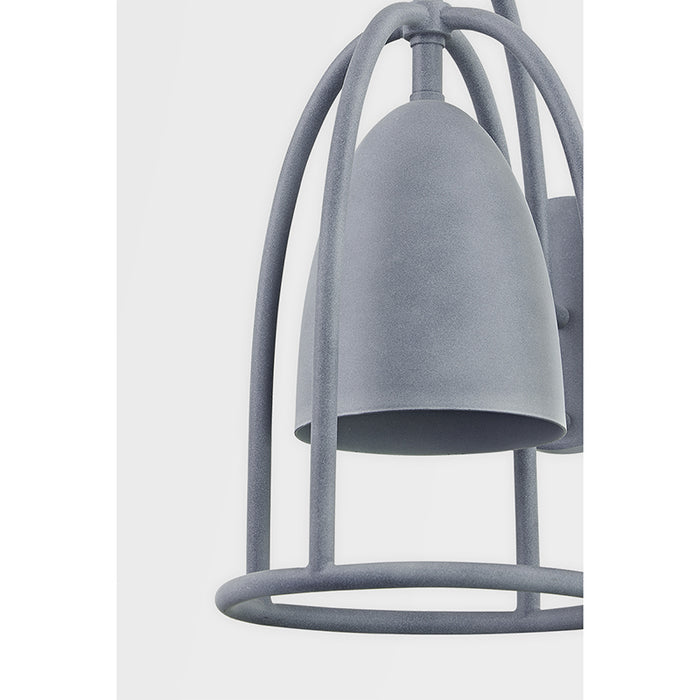 Architecturally inspired, Wisteria uses negative space to add a daring level of dimension. A simplistic cage encapsulates a dome shade, finished in weathered zinc. Available as a small or large pendant, and wall sconce. Dark sky compliant.