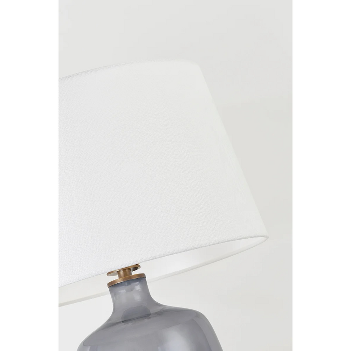 Artesia combines a vintage silhouette with contemporary color. Inspired by antique glass vessels, the sleek, sculptural base is made from smoked plated glass for a modern yet organic style. The twisted black fabric cord and subtle Patina Brass accent add a touch of formality. This effortlessly chic table lamp has a neutral palette that blends with many interiors.