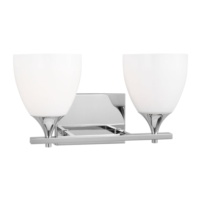The Toffino 2-Light Vanity by Drew & Jonathan features milk glass shades that provide soft ambient uplighting, creating a warm and inviting glow.
