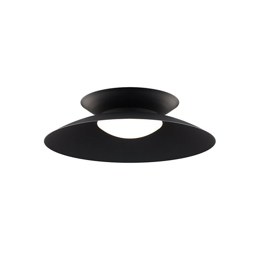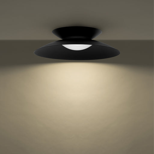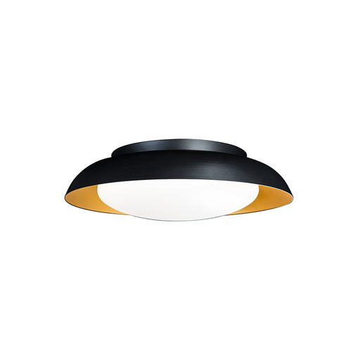 DWELEDGo bold with a dramatic ceiling luminaire that is ideal for minimalist spaces. A black shade curves around a white diffuser, creating downward-dire...
