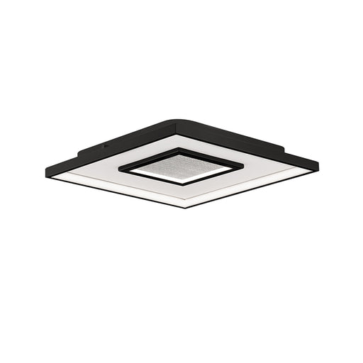 DWELEDA perfect platform. This bi-level ceiling luminaire features a large, aged brass square crowning a smaller black profile that embraces an etched op...