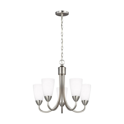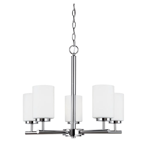 Generation LightingGeneration 31161 Oslo 5-lt 24” Chandelier Features Finish: Brushed Nickel, Chrome, Midnight Black Material: Steel, Cased Opal Etched Glass Voltag...