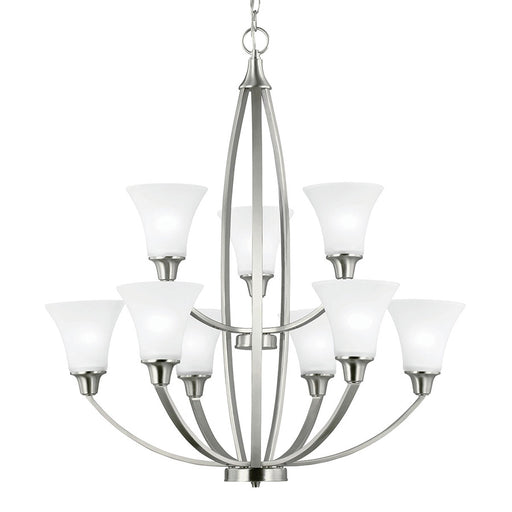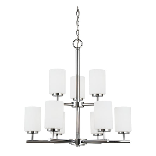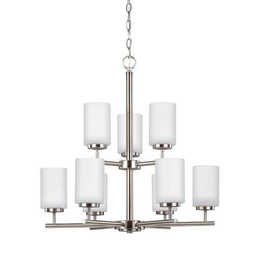 Generation LightingGeneration 31162 Oslo 9-lt 26” Chandelier Features Finish: Brushed Nickel, Chrome Material: Steel, Cased Opal Etched Glass Voltage: 120V Easily co...
