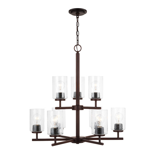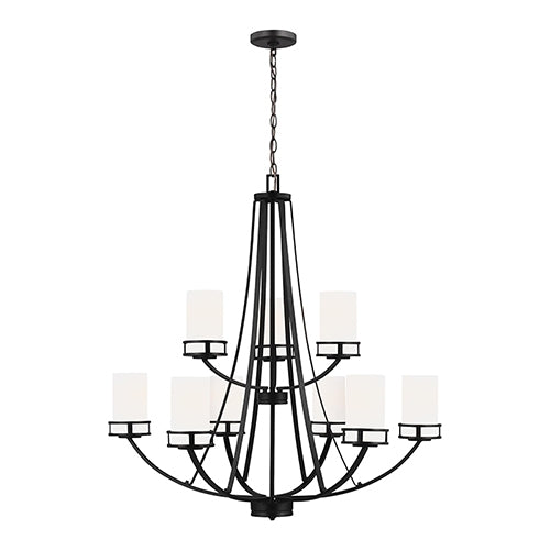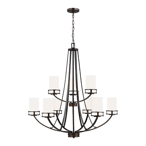 Generation LightingGeneration 3121609 Robie 9-lt 33” Chandelier Features Finish: Midnight Black, Burnt Sienna, Bronze Material: Steel, Etched / White Inside Glass V...
