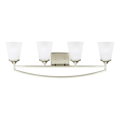 Generation LightingGeneration 4414504 Belton 4-lt 29" Wall / Bath Sconce Features Finish: Brushed Nickel, Chrome, Material: Steel, Glass Glass: Clear Seeded Voltage...