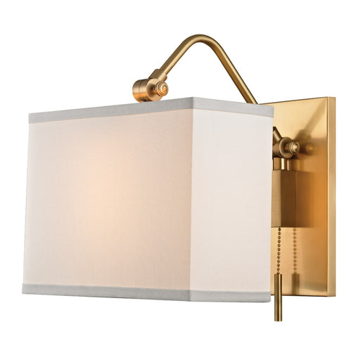 Hudson Valley5410 Blixen 1-lt Wall Sconce Features Finish: Aged Brass, Polished Nickel Shade Material: Linen Lamping 1 x 60W E12 Candelabra Base Bulb (Not In...