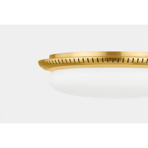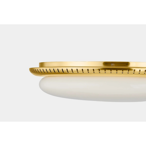 Hudson ValleyA Deco-inspired flush mount positioned directly on the ceiling to provide optimal overhead illumination. The large opal shiny glass shade is accent...