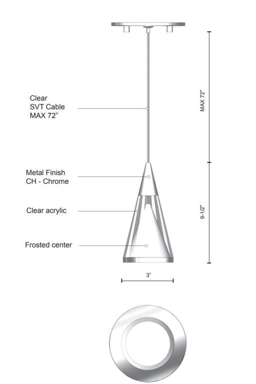 Kuzco LightingSingle LED lamp pendant, unique conical shape with chrome tip, clear with internal frosted designed acrylic and chrome trimmed diffuser with froste...