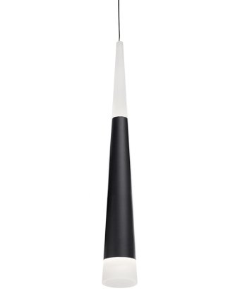 Kuzco LightingSingle LED lamp pendant, slender cone-shaped cylinder with acrylic top and bottom of cone which lights up on both ends. Chrome canopy and metal det...