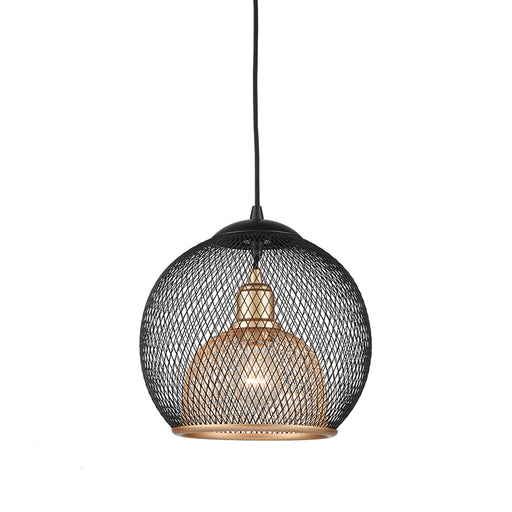 Kuzco LightingSingle lamp pendant with spherical powder-coated wire mesh shade. Color configurations include uniform black or an exterior black mesh with inner g...