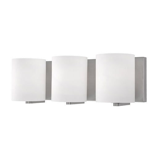 Kuzco LightingThree lamp vanity with white opal cylinder glass with your choice of brushed nickel or chrome metal details. Features Finish: Brushed Nickel, Chro...