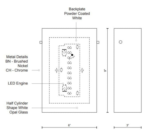 Kuzco LightingSingle LED wall sconce with rectangular shaped white opal glass. Metal details in brushed nickel or chrome finish, and is equipped with our powerfu...