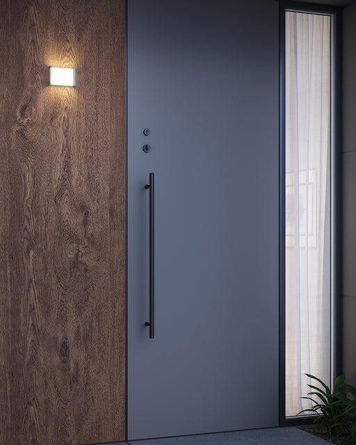 Kuzco LightingArchitectural designed exterior wall sconce, die-cast aluminum cubic body with opal glass to provide even glow of light. Features: Finish: Black W...