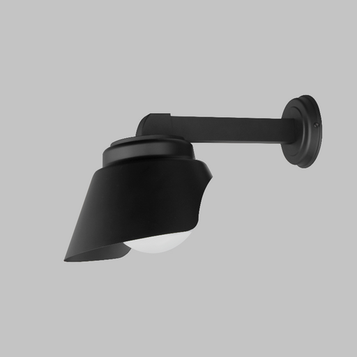 Maxim LightingA white glass globe casts light that is hooded by a curved Black polycarbonate shade. The rectangular arm extends directly out, while the hooded sh...