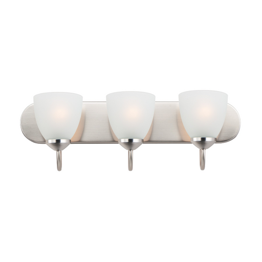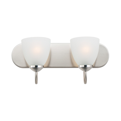Maxim LightingThis transitional design works in any style home. Full length oval backplates support simple bell-shaped, Frosted glass shades. Features Finish: S...