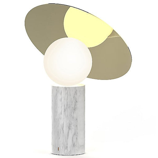 Bola Disc Table’s iconic silhouette is defined by its elegant chromed stainless steel disc shade positioned at 45 degrees while elevated by an opal...