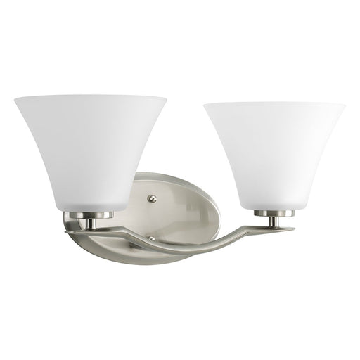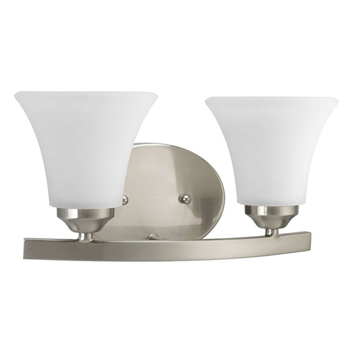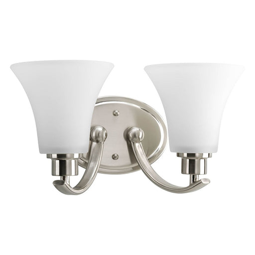 Progress LightingBring joy into your heart and into your home with this wonderful two-light bath fixture. Features: Finish: Brushed Nickel w/ White Etched Glass, A...
