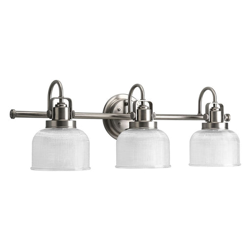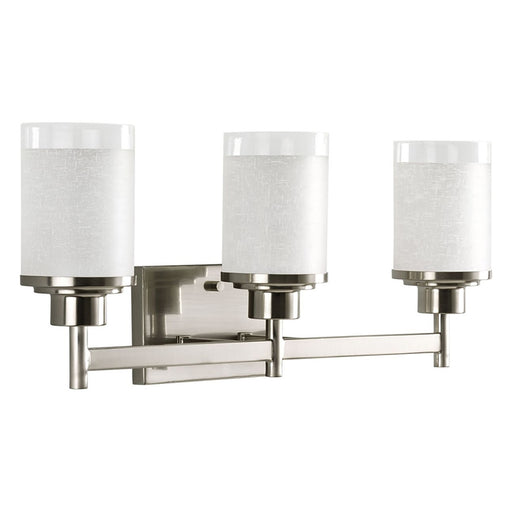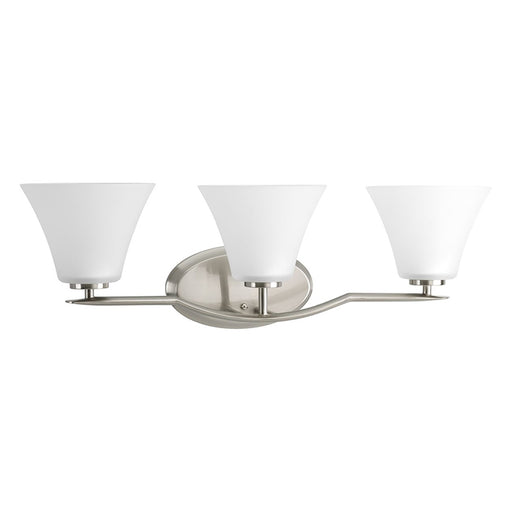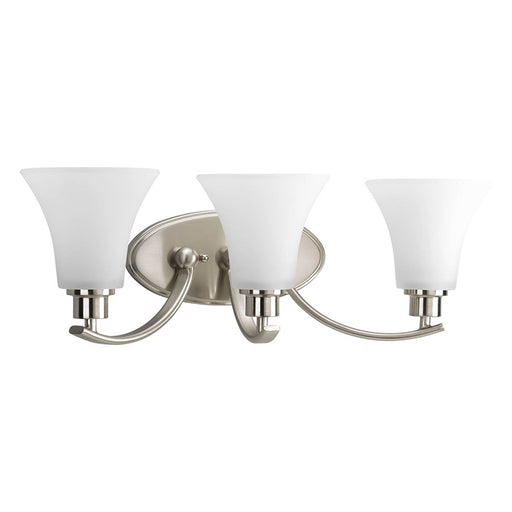 Progress LightingBring joy into your heart and into your home with this wonderful three-light bath fixture. Features: Finish: Brushed Nickel w/ White Etched Glass,...