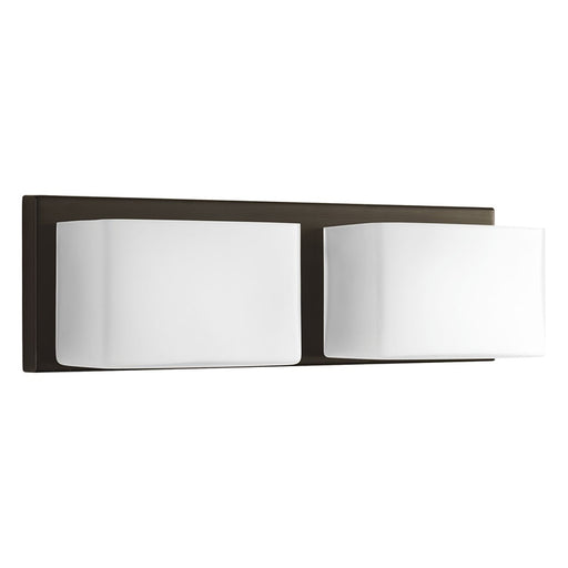 Progress LightingTwo-Light LED modern wall fixture with geometric frosted glass shades and a replaceable LED module.Features: Finish: Polished Chrome, Antique Bronz...