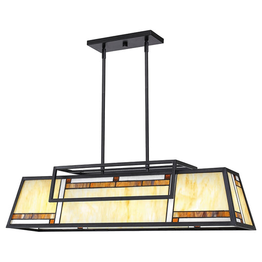 QuoizelA classic geometric Arts & Crafts piece with handcrafted art glass in shades of sapphire blue warm honey amber and cream. Features Finish: Val...
