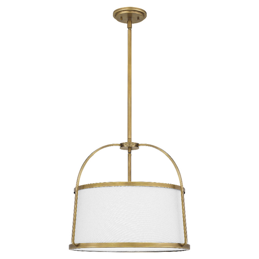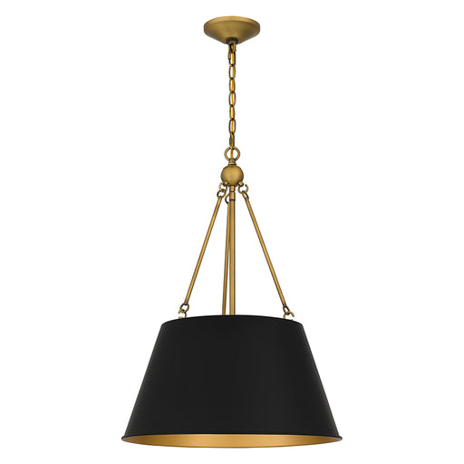 QuoizelYork is an enchanting take on the classic drum shade. This elegant iteration, available as a pendant, features a weathered brass finish. A light be...