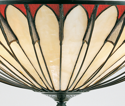 QuoizelThis gorgeous piece features warm peach shades of opalescent art glass edged with intricate filigree which is accented with delicate flower designs...