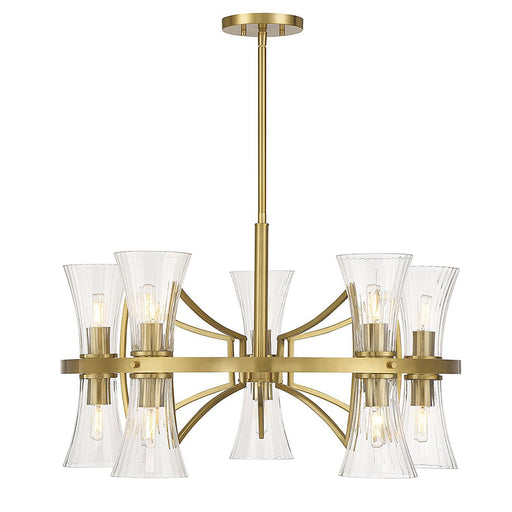 Savoy HouseFeatures Finish: Warm Brass Material: Metal Shade: Clear Ribbed Glass Voltage: 120V Dimmable Dimensions Length: 30.5" Width: 30.5" Height: 1...