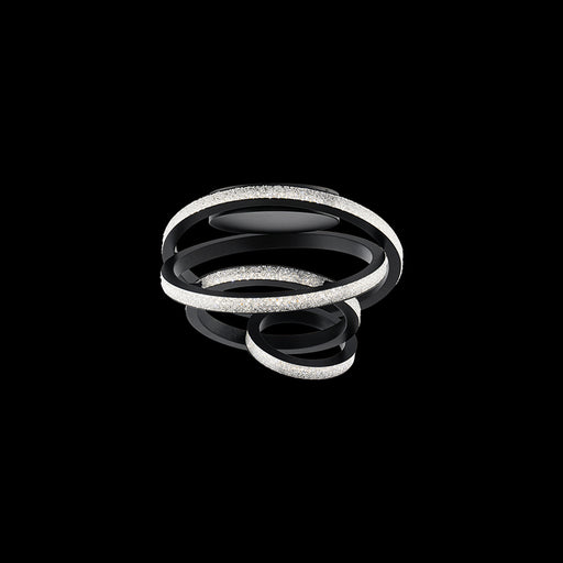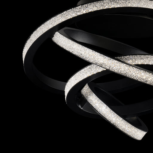 Schonbek BeyondTwisted. A curvy black metallic frame embraces a sparkling Radiance Crystal Dust diffuser, capturing and casting a glowing vortex of light. Feature...