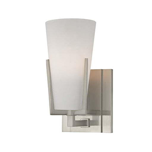 Hubbardton ForgeBeauty in a small package. The Prisma 1-Light Bath Sconce features a slumped white art glass combined with a vertical, very geometric metal element...