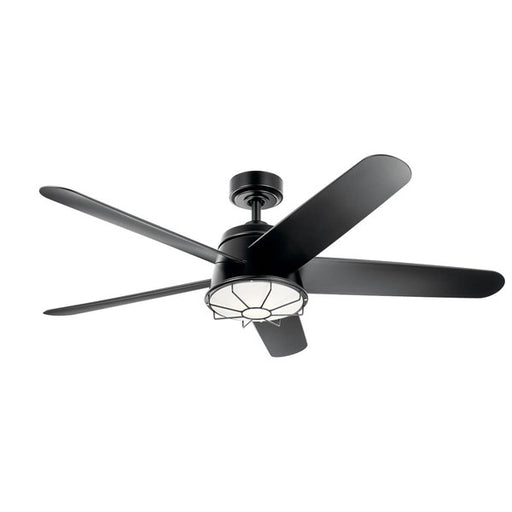 Kichler LightingThe Daya 54" ceiling fan diffuses its LED light through Satin Etched Cased Opal Glass surrounded by a cage. Finished completely in Satin Black, thi...