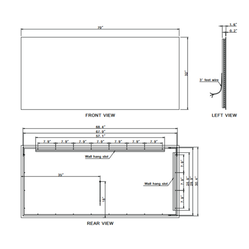 Paris MirrorFeatures Backlit Size: 70 x 32 Shape: Rectangle Wattage: 90W Voltage: 110V Color Temperature: 3000K, 6000K Lumen: up to 9940 CRI: 90+ Dimmable...
