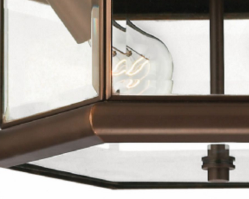 EurofaseClear glass paneling with weathered bronze metal framework. Features Finish: Bronze Shade: Glass Voltage: 120V Dimensions Length: 14" Width: 14...