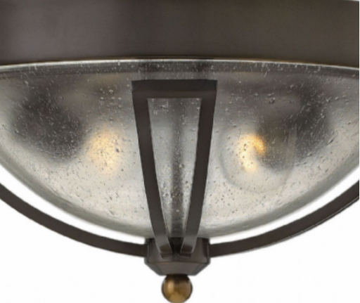 HinkleyEdgewater's classic design features durable cast aluminum and brass construction in a rich Black or Oil Rubbed Bronze finish with clear seedy glass...
