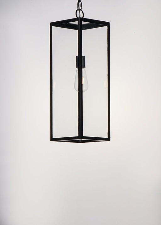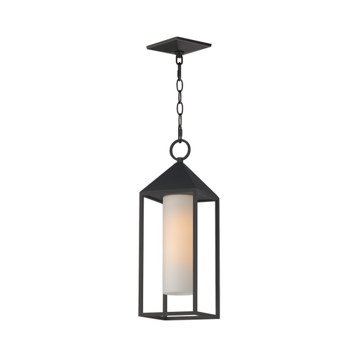 Maxim LightingSquared columns in Matte Black finish tower above the cylindrical glass shade rated for outdoor applications. A rectangular hook detail carries the...