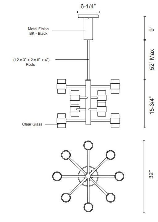 Maxim LightingFeatures Finish: Black Shade: Clear Glass Material: Steel Voltage: 120V Dimmable Dimensions Width: 9" Height: 16" Max Overall Height: 56" Min ...