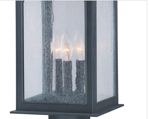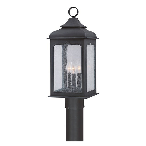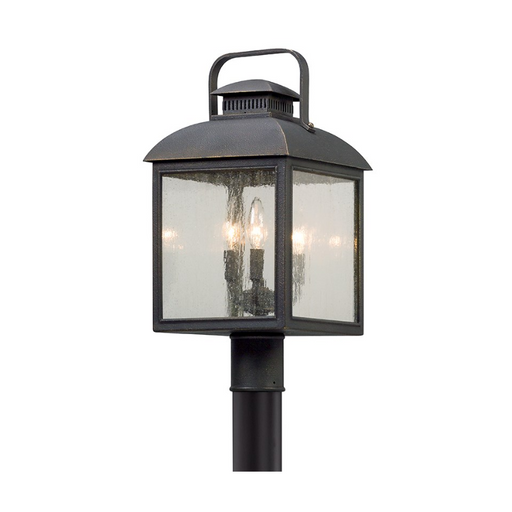 Troy LightingTroy Henry Street 3-lt Post Fixture Features Finish: Textured Bronze Glassware: Clear Seeded Metalwork: Hand-forged Iron Post sold separately Volt...