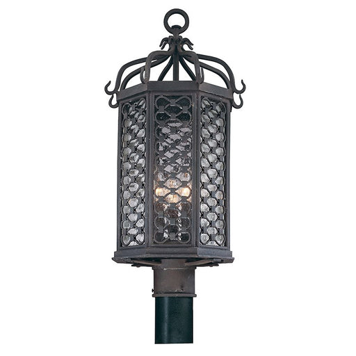 Troy LightingTroy Los Olivos 3-lt Post Fixture Features Finish: Textired Iron Shade Material: Glass Shade Color: Clear Seeded Canopy/Backplate: 5" D Post sold ...