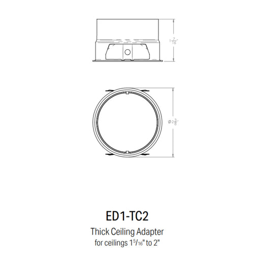 CSL LightingFeatures Thick Ceiling Adapter for ceilings 1-5/16" to 2" For use with 1" Eco-Downlight Dimensions Width: 2.38" Height: 1.44" Documents Spec S...
