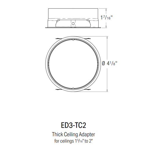 CSL LightingFeatures Thick Ceiling Adapter for ceilings 1-5/16" to 2" For use with 3" Eco-Downlight Dimensions Width: 4.13" Height: 1.44" Documents Spec S...