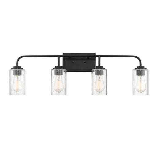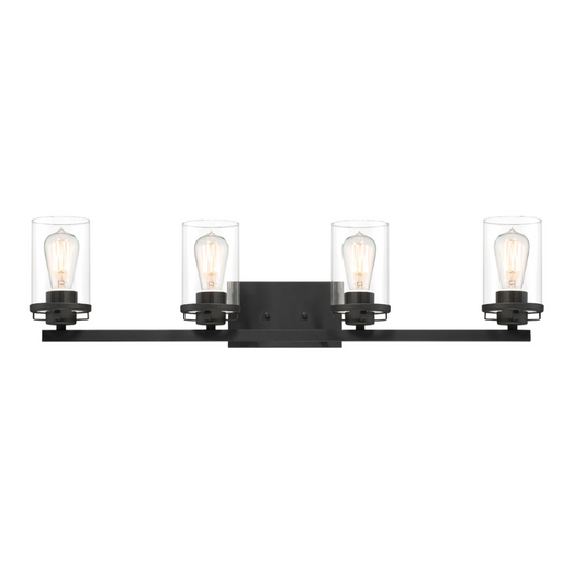 Designers FountainFeatures Finish: Matte Black Shade: Clear Glass Voltage: 120V Dimensions Width: 33" Extension: 9" Lamping 4 x 60W Medium Base Incandescent (...
