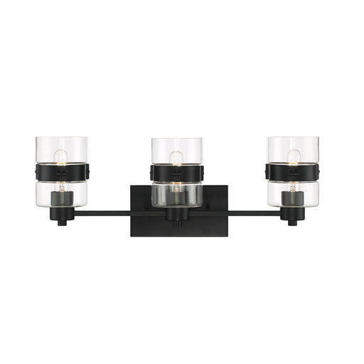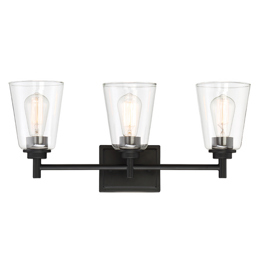 Designers FountainFeatures Finish: Matte Black Shade: Clear Glass Voltage: 120V Dimensions Width: 24.75" Extension: 9" Lamping 3 x 60W Medium Base Incandescen...