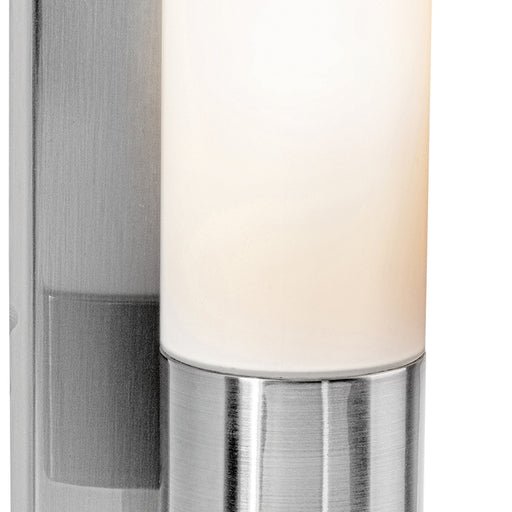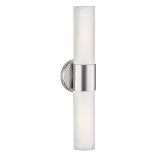 Contemporary 2-light cylinder shaped wall fixture with opal glass and brushed steel finish Features: Finish: Brushed Steel Material: Steel Glass: ...