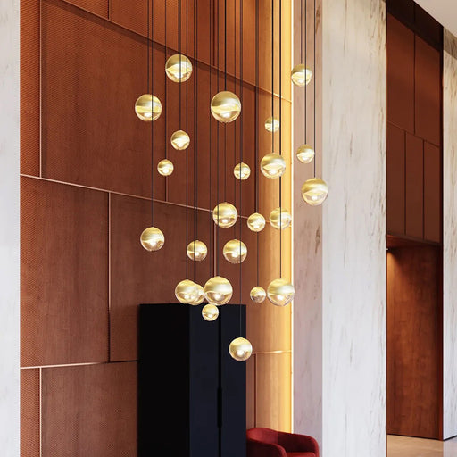 SonnemanIntersecting stems form clusters of illuminated glass spheres in a dance-like rhythm. Mounted in precisely poised positions along rectangular beams...